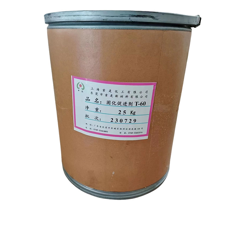 T-60 is a catalyst with resin as carrier. The amount ofT-60canbe used in powder coating to lower curing temperature orshorten the curing time, which contains active ingredient 10%about.Excellent resistance to yellow and dispersion, does not affecttheflow and gloss of the coating.
